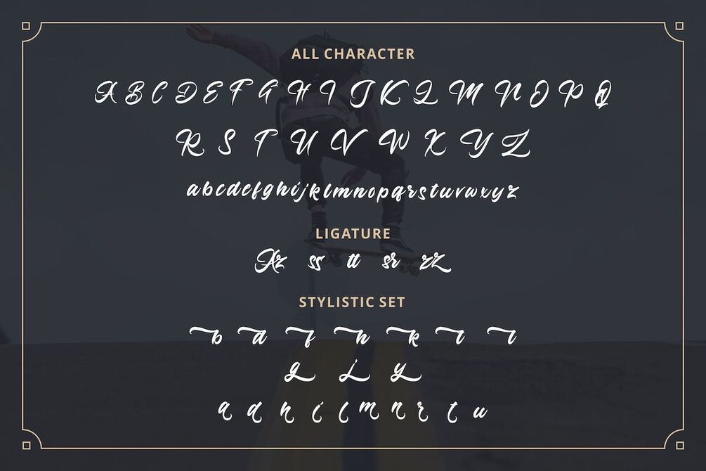 Azingdar is a Retro bold script with Groovy style, unique design taste and combine with classic retro style of the 80s, trendy, vintage, and sporty. The Azingdar is perfect for retro lovers, besides this font is also perfect if used for brands such as: barbershop, motorcycle club, clothing, logo brand, coffee shop, shoe brands, hipster and many more.